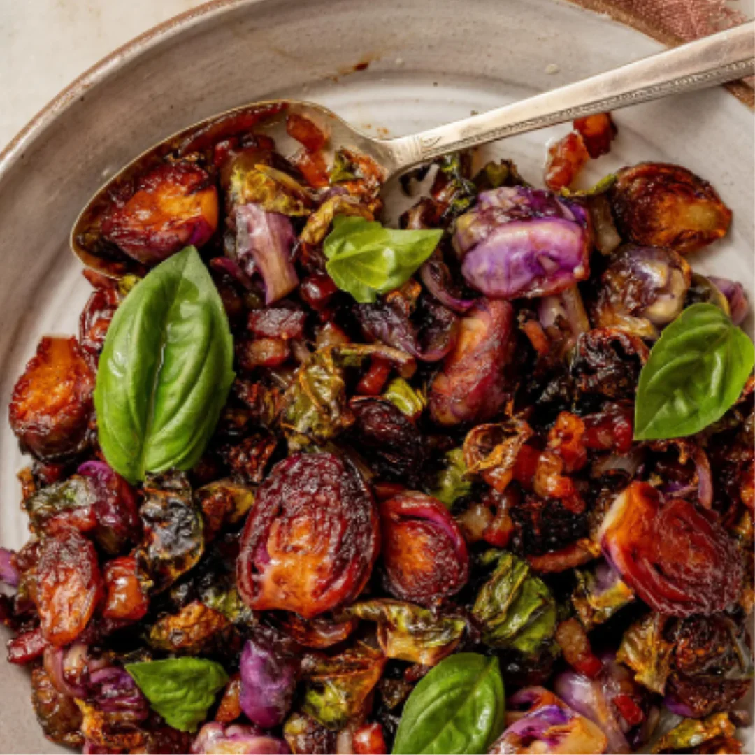 This warming winter side dish features Brussels sprouts roasted to perfection with a spicy maple glaze