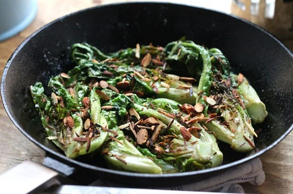 A light and elegant side dish of tender buttered lettuce topped with crunchy toasted almonds – simple, fresh, and full of flavour.