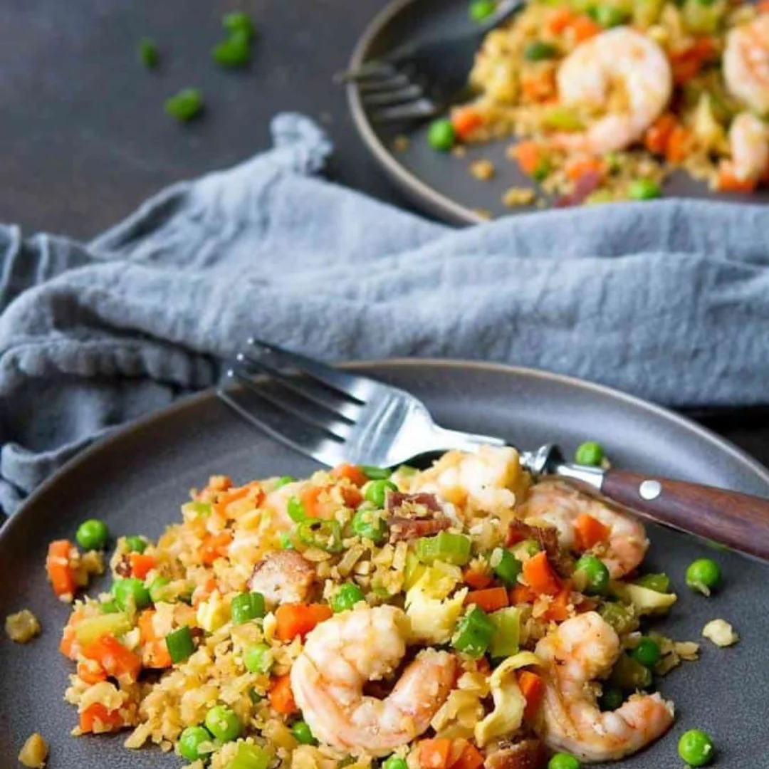 Ditch the takeout and serve up a batch of this 30-minute low carb Prawn Cauliflower Fried Rice!